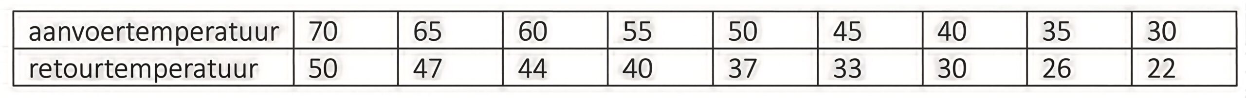 Referentietabel ideale temperaturen radiatoren